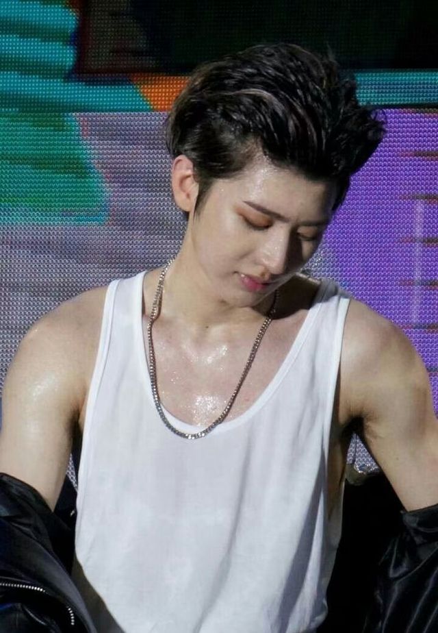 浑身湿透的蔡徐坤,五官更显得精致无缺,特别是那纤长浓密的眼睫毛,上面还挂着一滴汗珠
