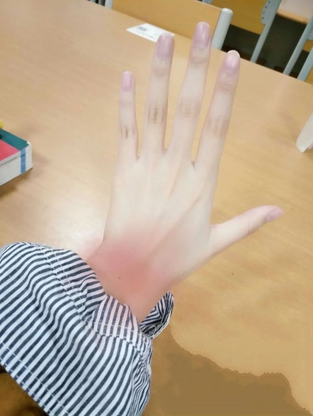 初婉璃的手很白,所以红色的部分特别明显