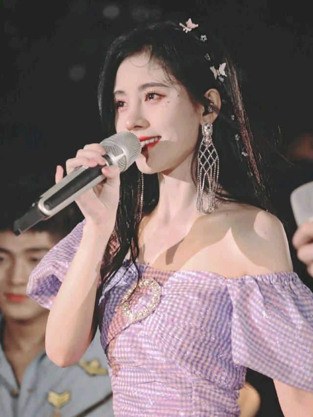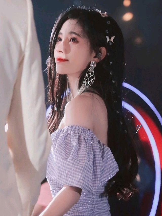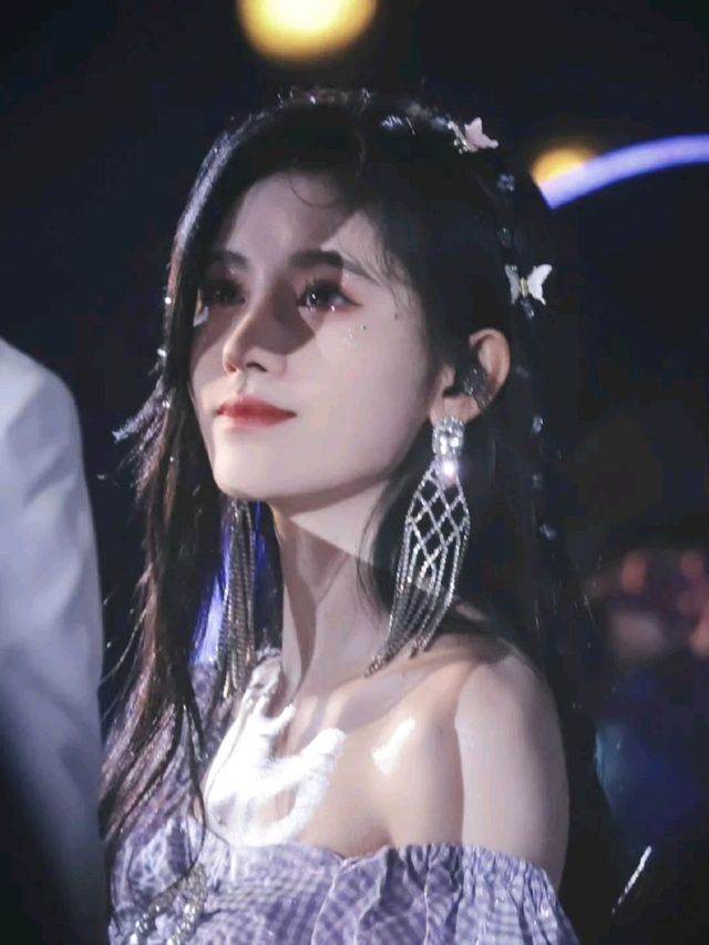 江寻月这次的舞台把头发染回了黑色,身上穿的紫色的裙子,头上的蝴蝶发饰因为化妆间的灯光亮晶晶的,一下子恍住了田柾国
