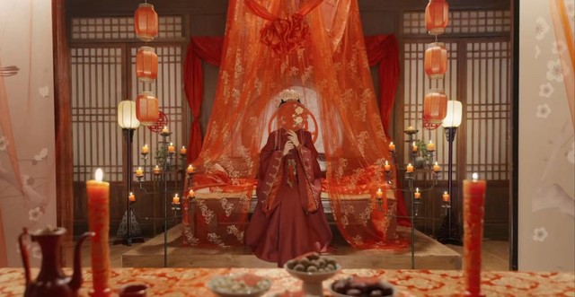 然后画面一转,还是大婚,但是这次不是在云梦泽,这里......好像是苍盐海,只见十里红装,桃花红的灼伤了眼,满城落花失了颜色,她一身嫁衣如火,凤冠霞娉...她还看到了凤九,看到了小兰花都在参加她的婚礼,新郎依旧是东方青苍,只见突然原本晴朗的天空变得阴沉黑暗,这时来参加的婚礼的宾客们好像如临大敌一般,画面中的东方青苍更是直接用用匕首刺进了她的心脏。