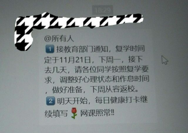 林晴初(作者)本来国家通知的是明天(11月17日)复课的