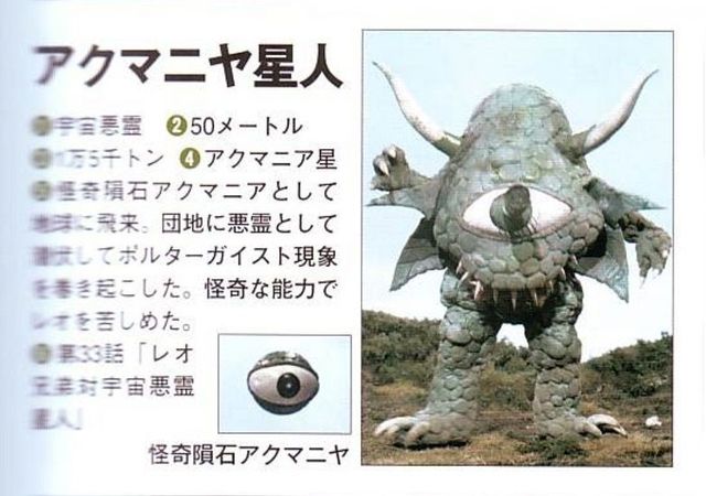 阿库玛尼亚星人缩成一块陨石来到了地球,飞到了住宅区后,这颗球状大眼睛就变成了血红色,并释放了螺旋状的红光后,消失在了住宅区的上空