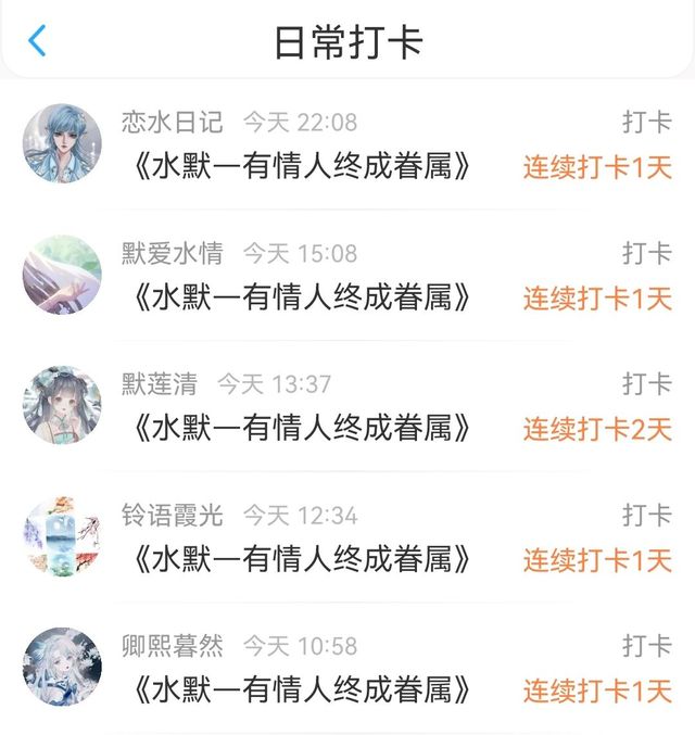 作者感谢恋水日记,默爱水清,铃语霞光,卿熙暮然的打卡