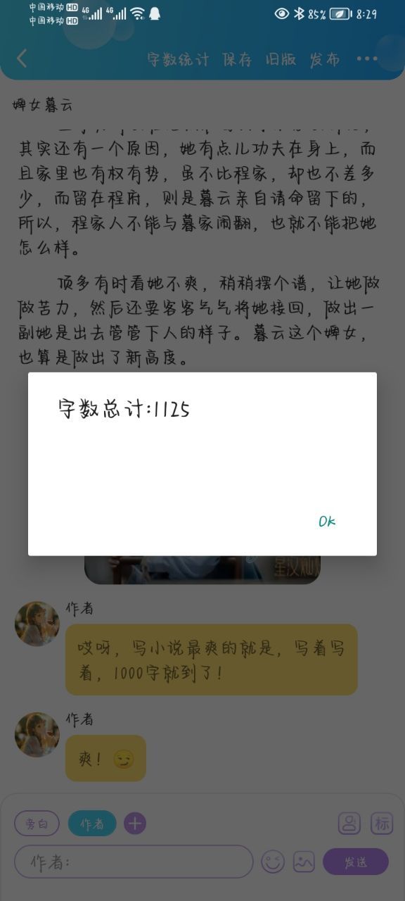 作者哎呀,写小说最爽的就是,写着写着,1000字就到了!