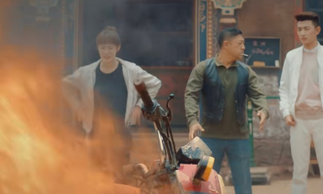老板突然喊了起来,你们随着老板的看的方向看去,只见门口本还好好的摩托车居然自燃了起来,老板跑了出去,你们也跟了出去。