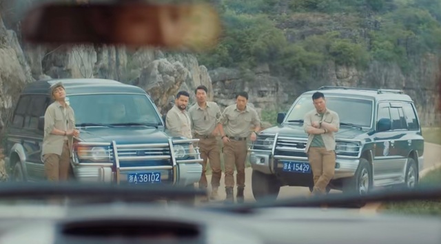 刚行驶没多久,就被前面的两辆车一群来者不善的人给拦住了去路,通过后视镜看见了刚才的那个男人,真是难缠。