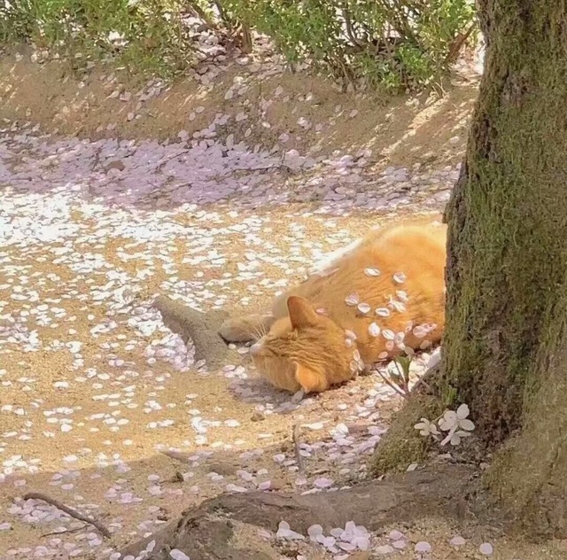 懒洋洋地躺在了桃花树下翻肚皮晒太阳
