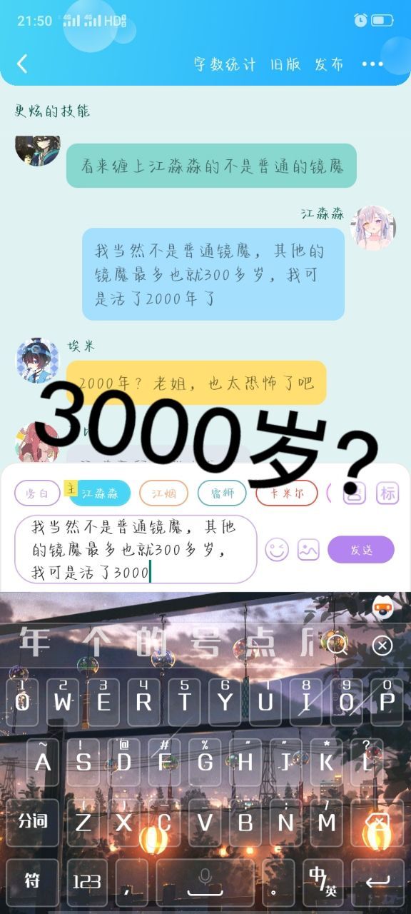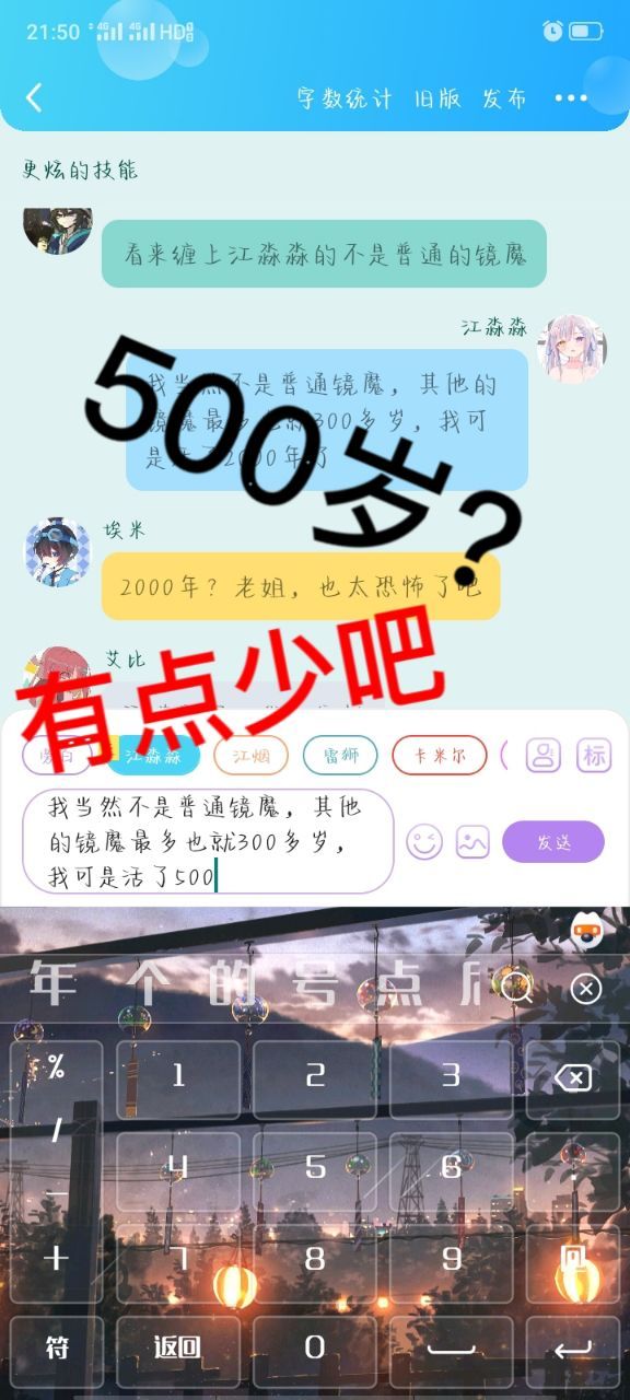 作者在这一话的时候讲到镜魔的年龄设定时,也算是深思熟虑,不过最后还是定的2000+💦💦
