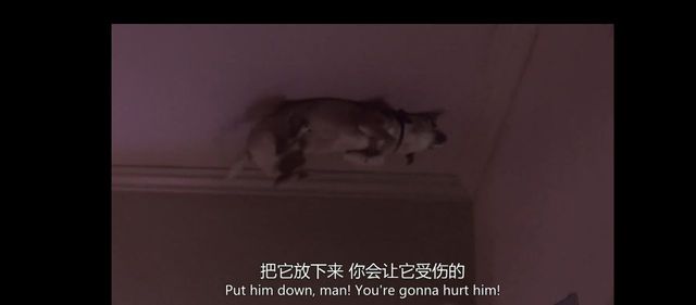 看这个可爱的狗狗,真的好可怜的,整个身体都粘在天花板上了,我都为它揪一把汗。