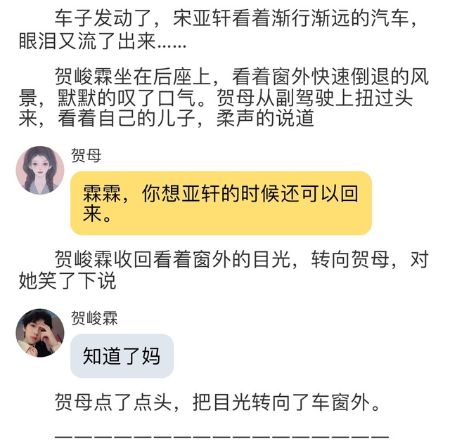 宋亚轩喂?贺儿!你终于给我打电话了,我还以为你忘了呢。正打算给你打电话呢,你那边怎么样,环境好不好......