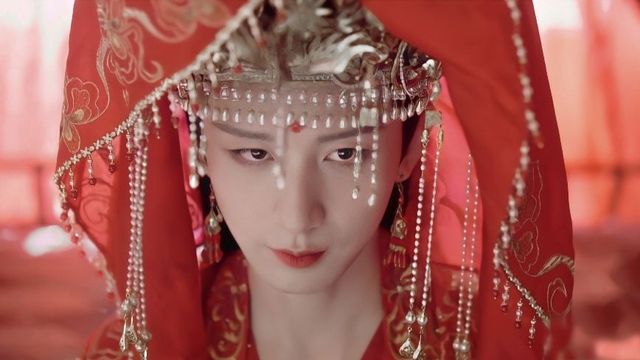 虽然是个男子穿上这合身的嫁衣,但因为他一出生就有魅力的狐妖穿上更显得无比漂亮和女子相比不分上下
