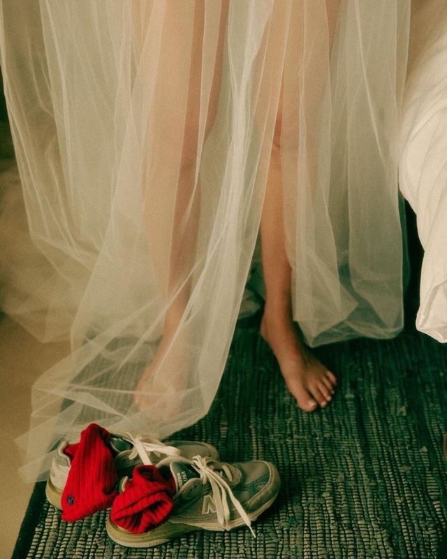 再看向新娘子钱多多,身上穿着虽不华丽却昂贵的婚纱,脚却只踩一双平底鞋——因为她怀孕了。