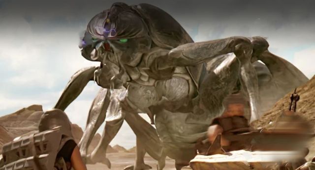 这是壳体虫,已演变成一张神似骷髅的脸;身体却保持着虫形,八爪着地腹部肥硕;腹部底端含毒液,经过之地寸草不生。
