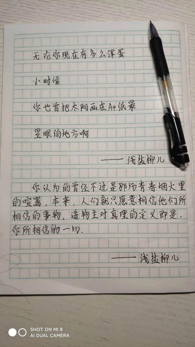 作者突然觉得我写的字大如锣斗,格子线已经限制不住我的脚步了。