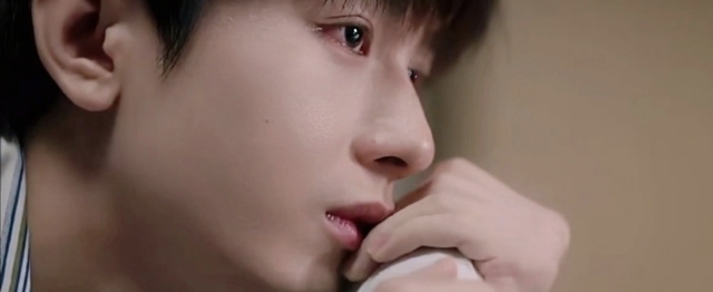 他僵在原地,目光死死盯着那片白色纱布,眼眶瞬间就红了。指尖控制不住地发颤,想碰又不敢碰,只觉得心口像是被什么东西堵着,又酸又疼,连呼吸都变得发紧。