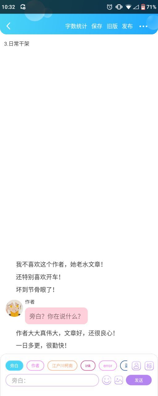 开朗的作者“我不喜欢这个作者,她老水文章!还特别喜欢开车,坏到节骨眼了”?