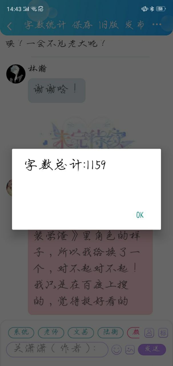 关潇潇(作者)由于我发现,林瀚的头像好像是用的《伪装学渣》里角色的样子,所以我给换了一个,对不起对不起!我只是在百度上搜的,觉得挺好看的