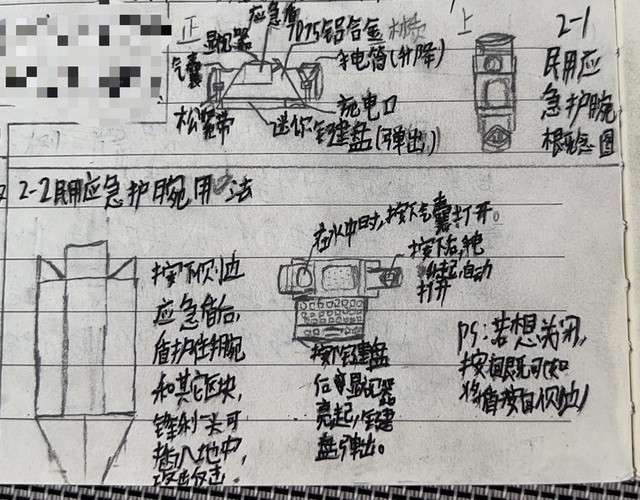 “你好,请您出示身份证或身份证号码,包括没来的。”一位特警说,“没有身份证的出示出生证明或者孕妇的身份证和照片。”我们出事后,特警用机器扫描后,给了我们几个背包。又让我们额外挑选了一些物品:我选了民用应急护腕和压缩饼干,妹妹是1块电击枪备用电池太阳能款和应急氧气瓶,舅舅一如既往是燃油。(民用应急护腕概念图2-1,民用应急护腕用法2-2)