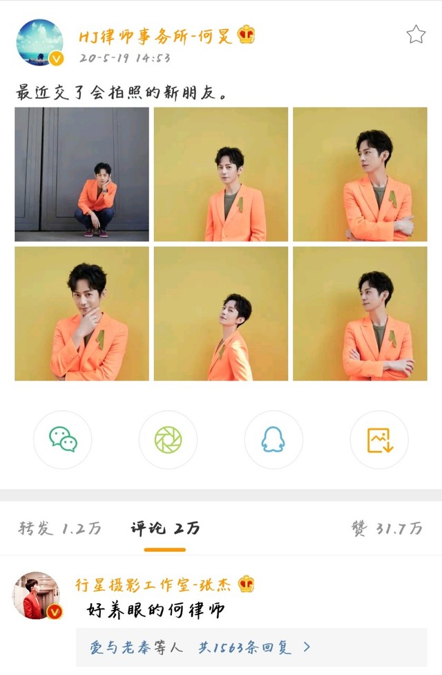 谢娜并没有去看何炅的照片,而是点进去评论区张杰的微博看了看,里面基本上都是他拍的别人,她往下翻了翻,翻到了他自己的照片