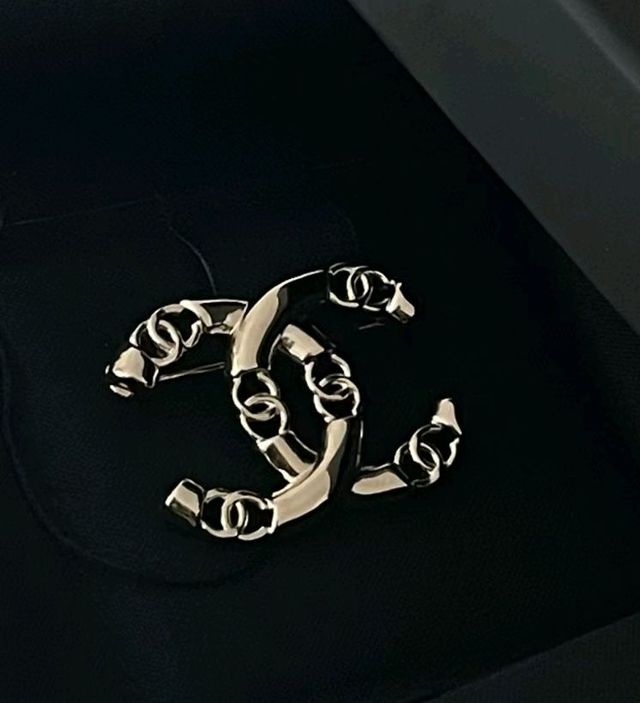 店员又拿出香奈儿标志性的胸针双c真的很亮眼
