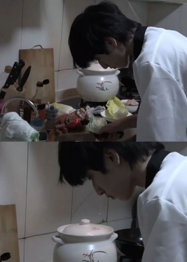 话音未落,扑通一声,一大勺酱料被丢进了锅里