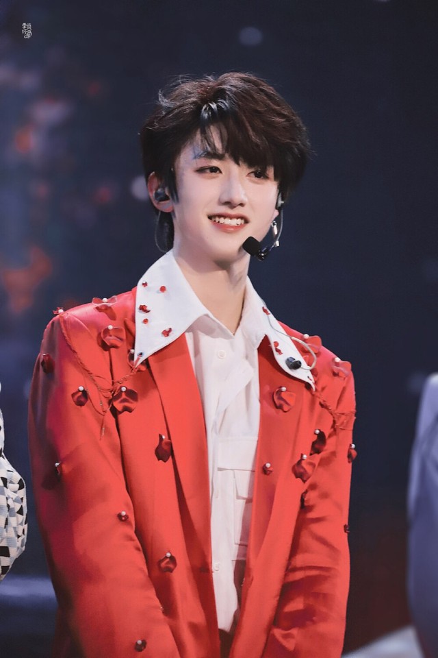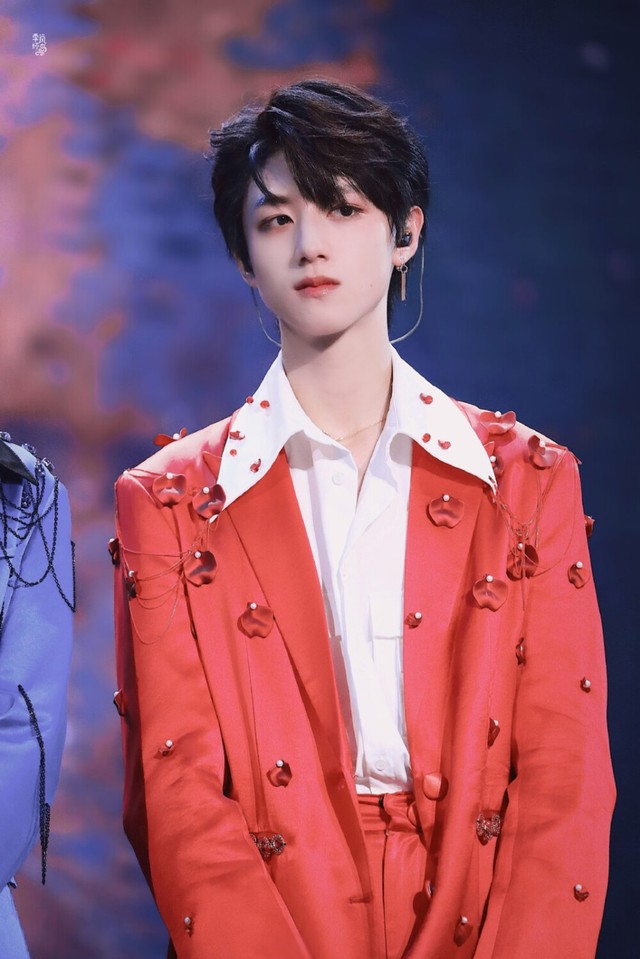 苏新皓拿了一件红色的西装递给朱志鑫并把他推进了试衣间。