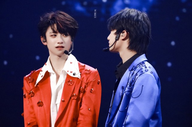 朱志鑫和苏新皓听到自己忽然被cue,楞了几秒钟才走上台。