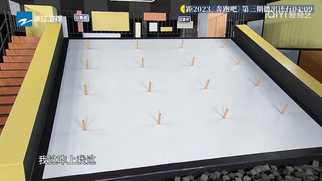 导演ok,那大家可以看到在斜坡平台上有16根可收缩的柱子,请借助这16根柱子努力留在平台上,柱子会在大家不知道的时间消失,停留在平台上更久的那一方就获胜了