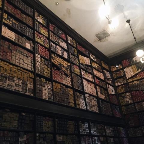 虽然店面外面看起来又小又破,里面的空间却不小。这里的书架真不少,每个书架都摆满了盒子。