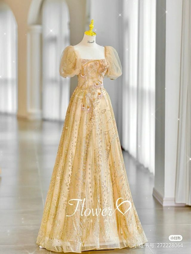 白光莹一袭金色礼服,点缀着颗颗珍珠,金黄色的宝石一闪一闪,还绣着金黄的花边