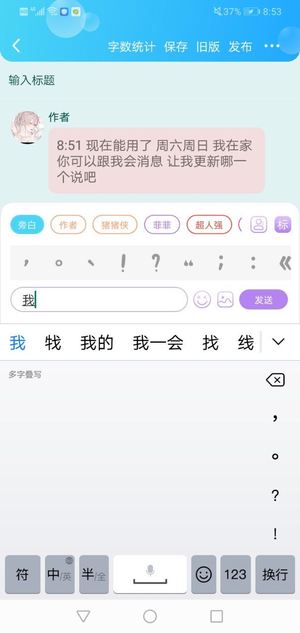 作者8:51 现在能用了 周六周日 我在家你可以跟我会消息 让我更新哪一个说吧