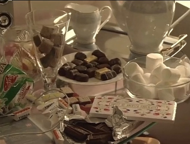 芸笙看到桌子上的各种甜品巧克力,随手拿了两块巧克力