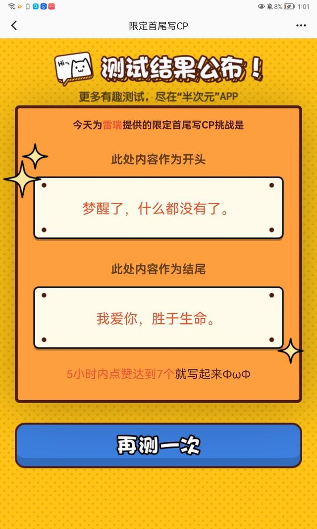 “格瑞,你不要闭眼啊,你给我撑着,格瑞”不管雷狮怎么吼格瑞,他都也醒不过来了,于是听见那个,于是听见那个丹尼尔的声音“恭喜参赛者雷狮获得凹凸大赛的第一名,请问你的愿望是?”