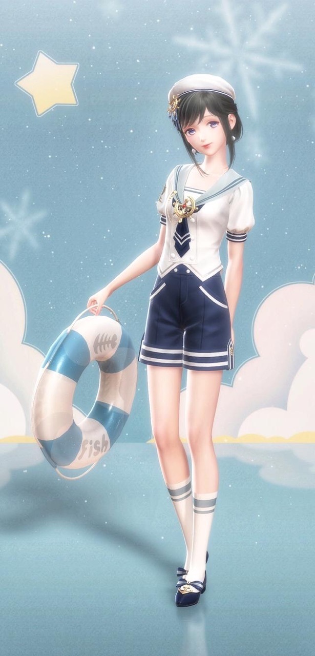 月见铃樱看向镜子,发现镜中的自己黑发如瀑,蓝色的眼睛如同蓝宝石一般,身上穿着蓝白相间的水手服