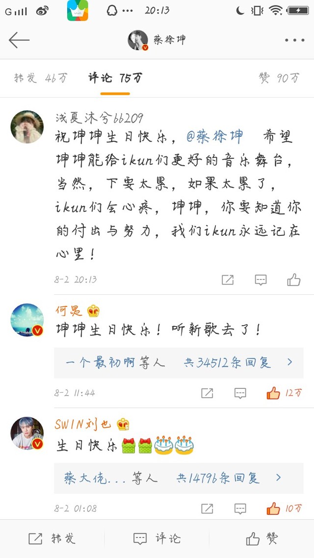 作者昨天,坤坤生日,不知道ikun们在微博评论了吗?反正作者我评论了!