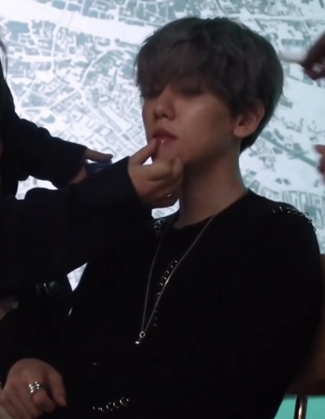 昕昕继续画了起来,伯贤的嘴很红润,唇妆不需要过重,昕昕轻轻的擦拭着伯贤嘴上多余的口红