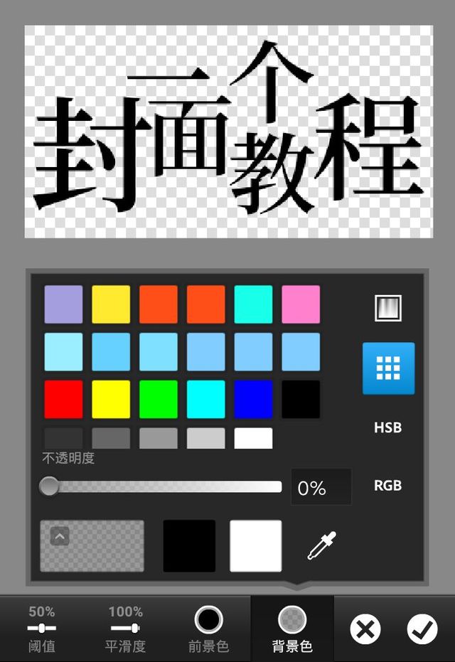 阈值50%。平滑度看个人喜好,我比较喜欢调成100%,之前看大佬的教程时是教调50的。前景色黑色,背景色透明(点开颜色将不透明度拉到0%)