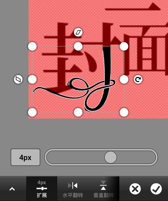 大致调整自定义在笔画上,不要超出原图片范围,这样点加号的话就会把一部分裁剪掉了。不需要特别精准(也不是不可以)