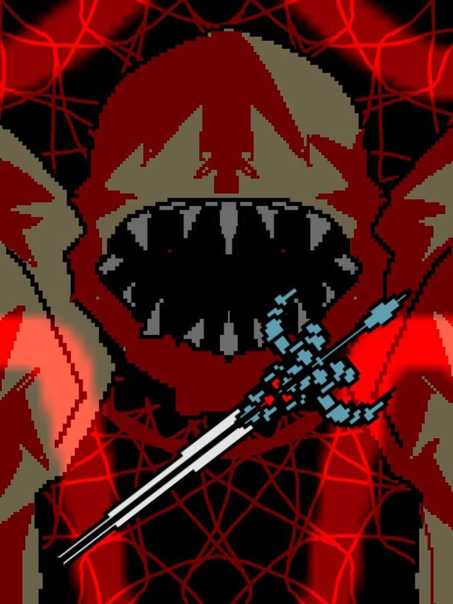 一个不小心被身后的尸体绊倒,“哗啦”一声摔进了血泊当中,我来不及犹豫,连滚带爬地往楼梯那逃跑,那怪物也发现了我,“轰”“轰”,它移动时产生了巨大的振动,满是血红的巨大嘴巴长满了尖牙,不停地想要咬住我,它突然跳起来,飞过我的头顶,堵住了唯一的出口,紧接着,它一阵蓄力,准备往我这冲过来,我手上的双蛇剑突然一阵颤抖,在那巨物冲向我的时候,双蛇剑脱手,自己刺向了那怪物的下巴,我顺势躲过了这一致命的攻击。趁着怪物虚弱,我连忙跑出了地堡。