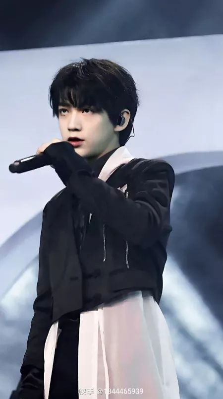 她静静的看着台上的少年唱着歌。