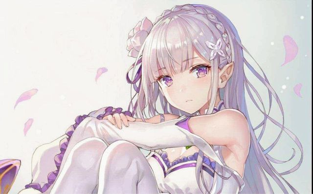 一位银发少女在悬崖边盘坐着,闭着眼,清晨的风吹拂起她的发梢