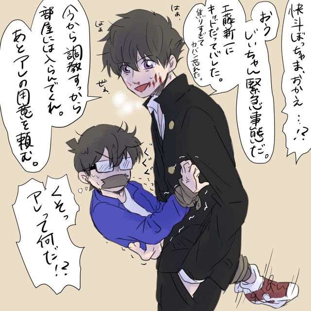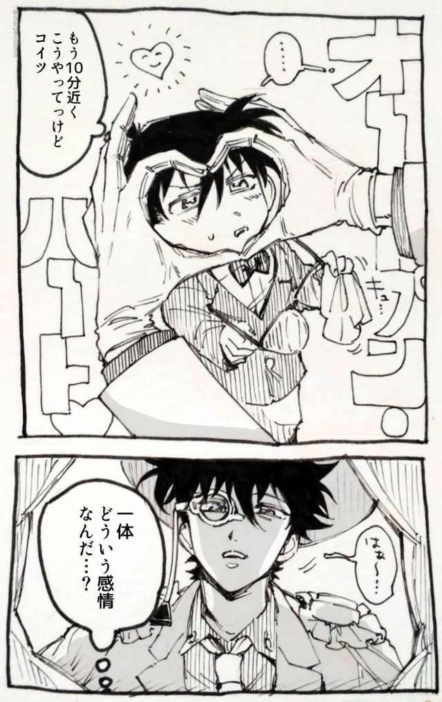 K:不是一样吗?海和天都是蓝色的。侦探和怪盗也是一样,虽然看上去有天壤之别,但是追根溯源,都是因为好奇心,而去探索发觉别人隐藏的某些东西的无礼之徒。