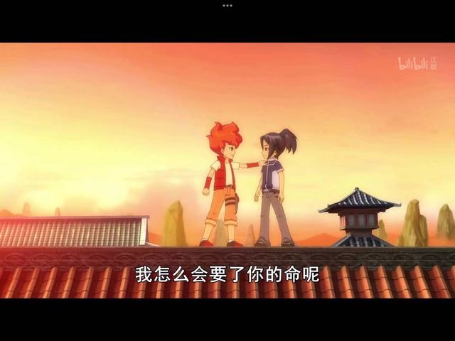 另一边,有两个人穿梭在六越山的屋顶上,红发少年使出一拳被蓝发少年一掌接住,两人后退几步,开始交谈起来。