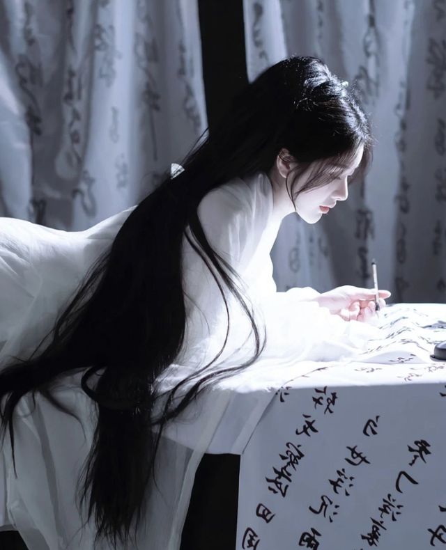 一头乌黑秀发垂在身后如黑色瀑布般顺滑