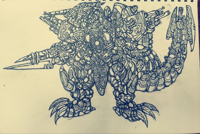 红色佩丹尼姆龙王龙王破碎光弹「发射三枚光弹抵消其中三个,剩下一个直接用嘴叼着嚼碎了,从头上的角发身闪电,同时从巨爪的炮管一齐发射的全自动实弹」