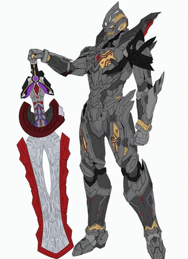 机甲黑暗特利迦复合型「胸口的计时器与巨剑上的剑刃的颜色不断变换着」三重哉佩利敖·长剑终结