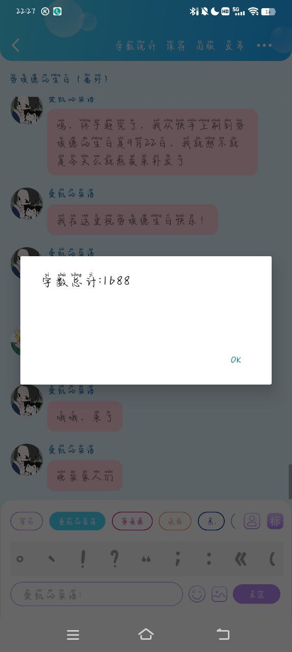 爱凯的安语呜,终于赶完了,我从快手上刷到劳埃德的生日是9月22日,我就想不就是今天么就熬夜来补发了