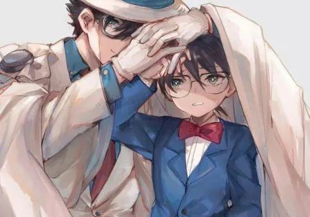 “可是名侦探,不也是小孩吗?”基德一阵坏笑,搂紧了柯南