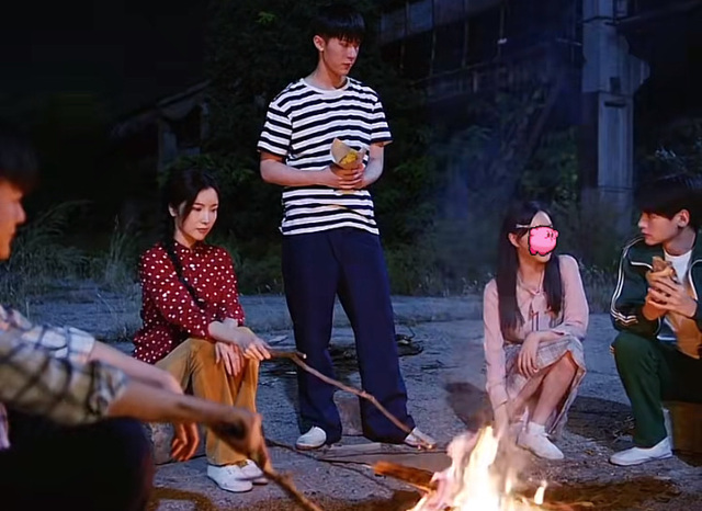 他们三个在前面走 江檬李冰在后面走