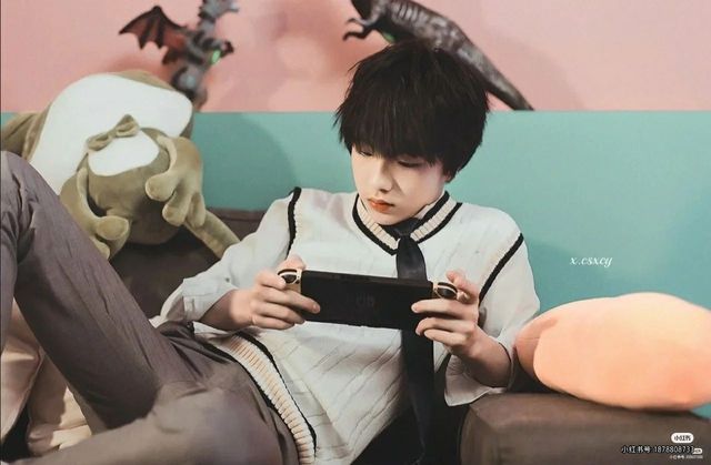 苏新皓拿着桌上的果汁喝了一口后,似乎觉得自己现在坐的姿势不太舒服,又继续换了一个舒服的姿势继续打游戏。
